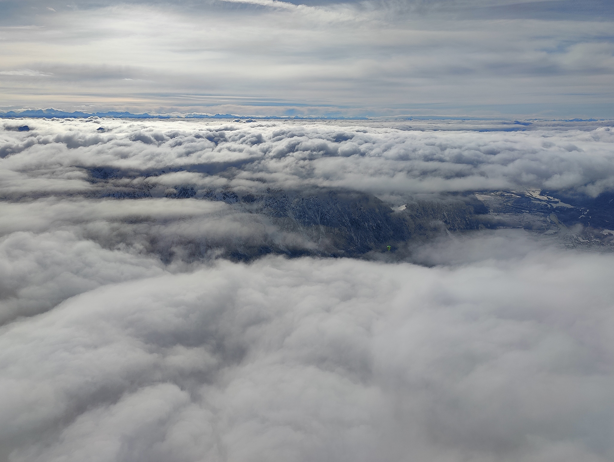 Ondanks de bewolking toch een prachtige ballonvaart kunnen maken. Opgestegen in Kössen en na anderhalf uur varen geland op het opstijgterrein van gisteren in Walchsee.