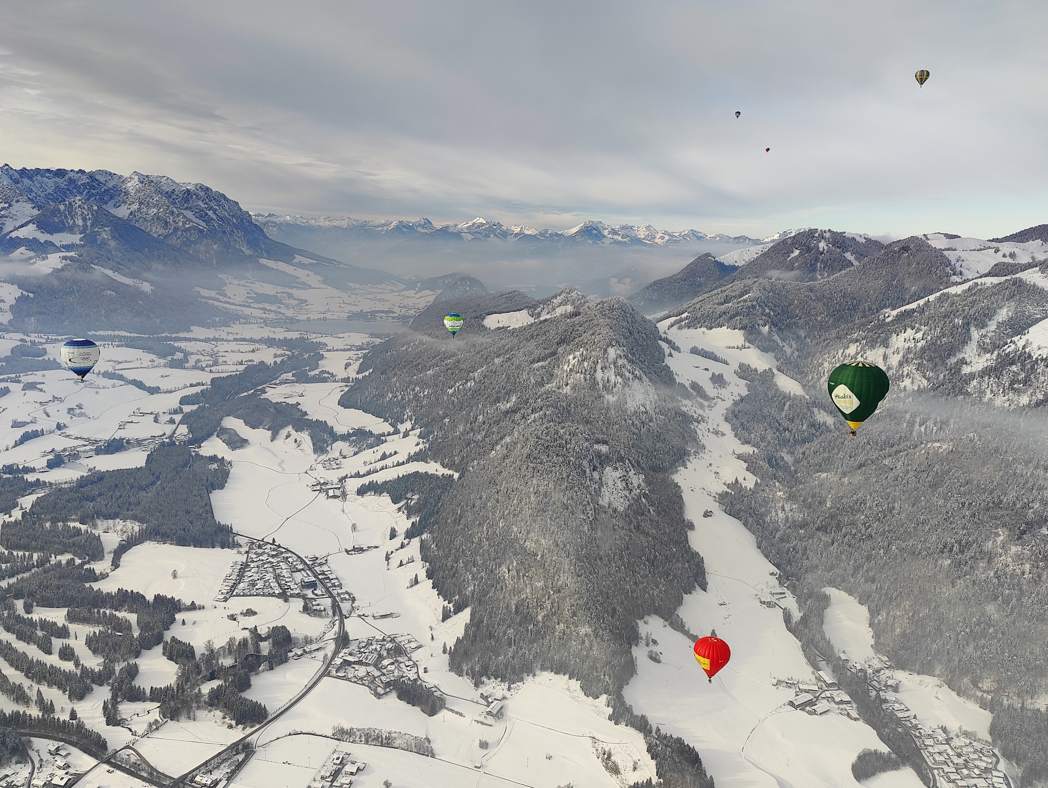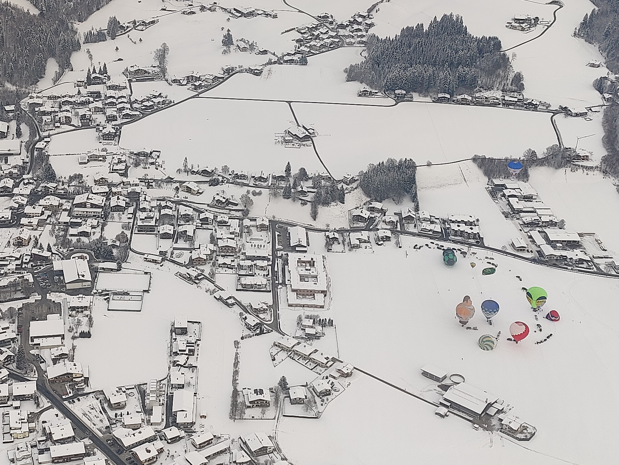 De eerste ballonvaart tijdens de Kaiserwinkl Ballonwoche in Oostenrijk is er eentje om in te kaderen. Bijna 2 uur gevaren en een tussenlanding kunnen maken naast de kerk van Walchsee. Op 8000ft hoogte stond er meer wind waardoor we tot in Niederndorf konden varen.