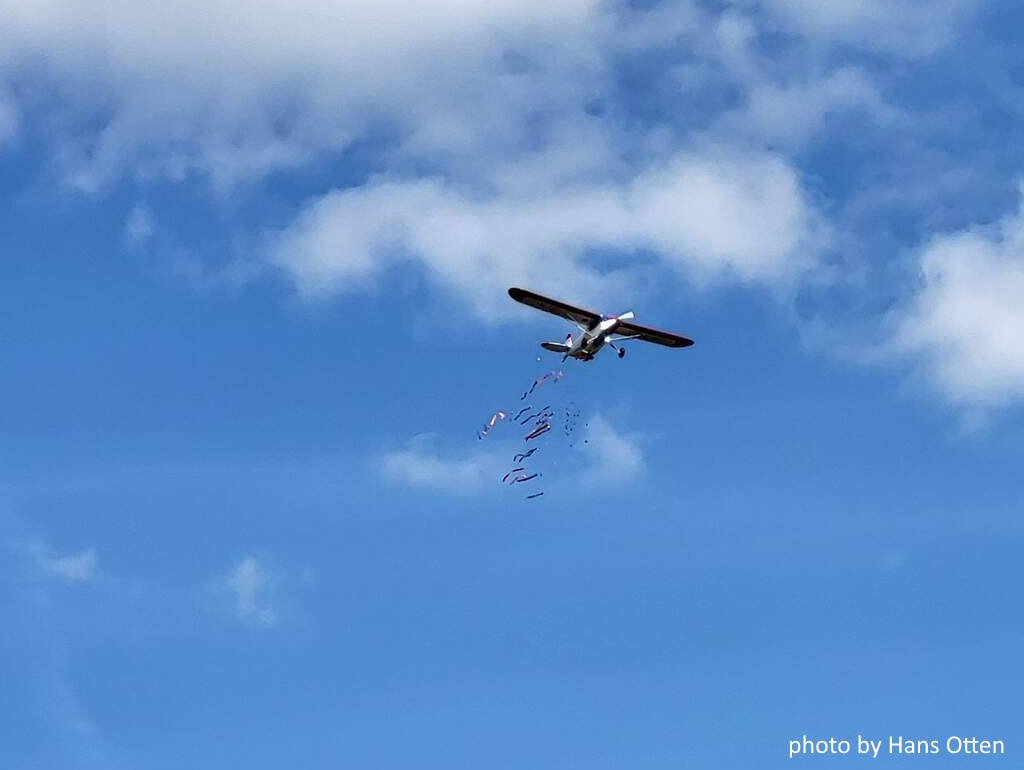 In de namiddag waren we te gast bij de Koninklijke Model Aero Club Herentals aan het Proostenbos. Niet om de lucht in te gaan maar voor een static display zoals dat genoemd wordt. Hier vond naar jaarlijkse traditie de paasdropping plaats. Vanuit de modelvliegtuigen werden paaseitjes over het veld gedropt waarna de kinderen naar hartenlust konden gaan rapen. Zes gouden eieren werden gedropt en onder de vinders ervan werd een cadeaubon voor een ballonvaart verloot. De opkomst was massaal met meer dan 100 kinderen. We kijken alvast uit naar de volgende editie.