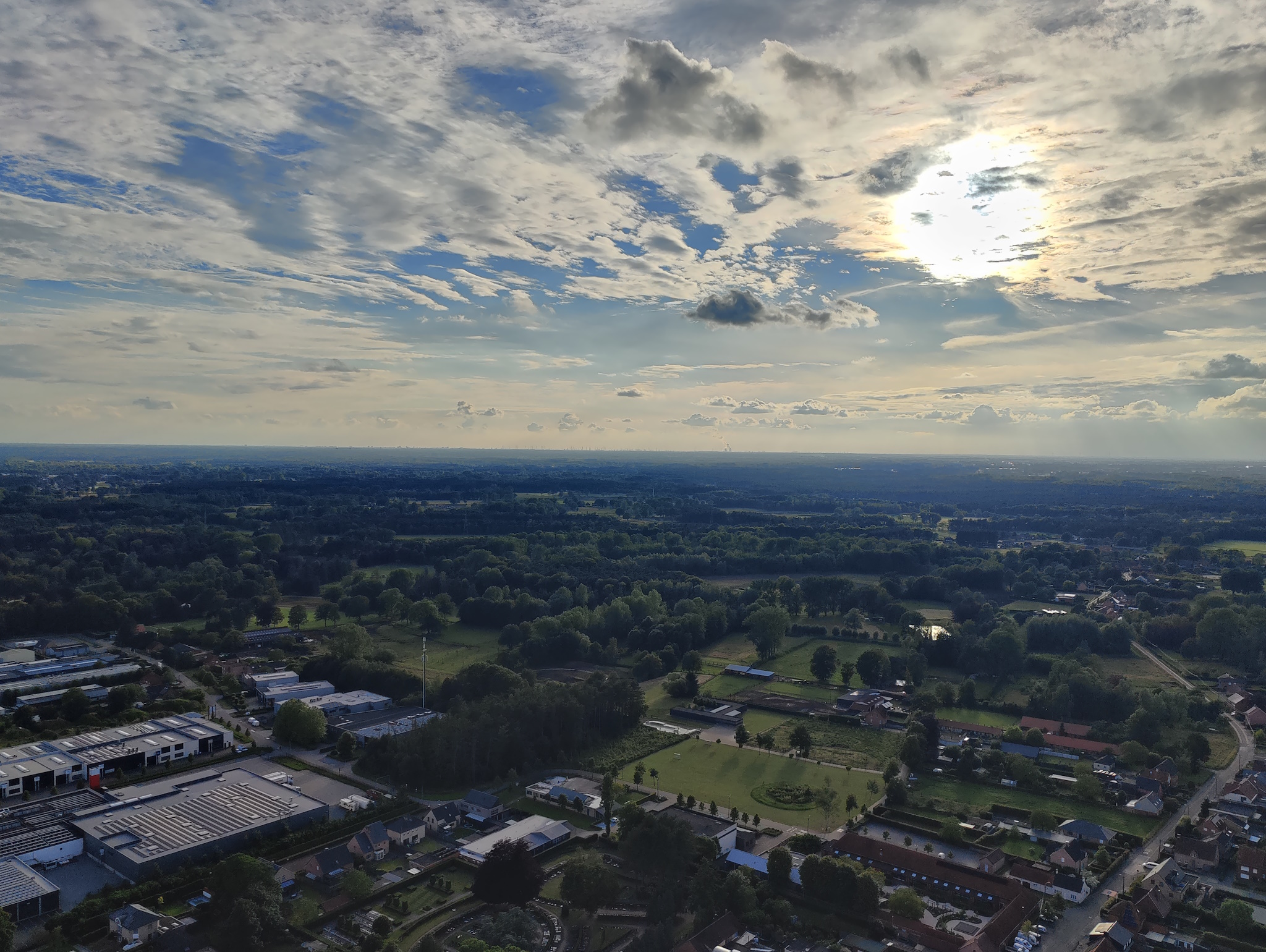 Perfecte omstandigheden om te ballonvaren vanavond. De voorbij regenperiode heeft de lucht gezuiverd waardoor we een uitstekende zichtbaarheid hadden. We besloten in Gierle aan de molen op te stijgen. Met de verwachte windrichting zouden we naar Lichtaart varen wat ook gelukt is en onze passagiers hun gemeente en eigen woning vanuit de lucht konden zien. Eenmaal de bossen voorbij vonden we een pas gemaaid grasveldje waar de luchtballon zachtjes werd neergezet.
