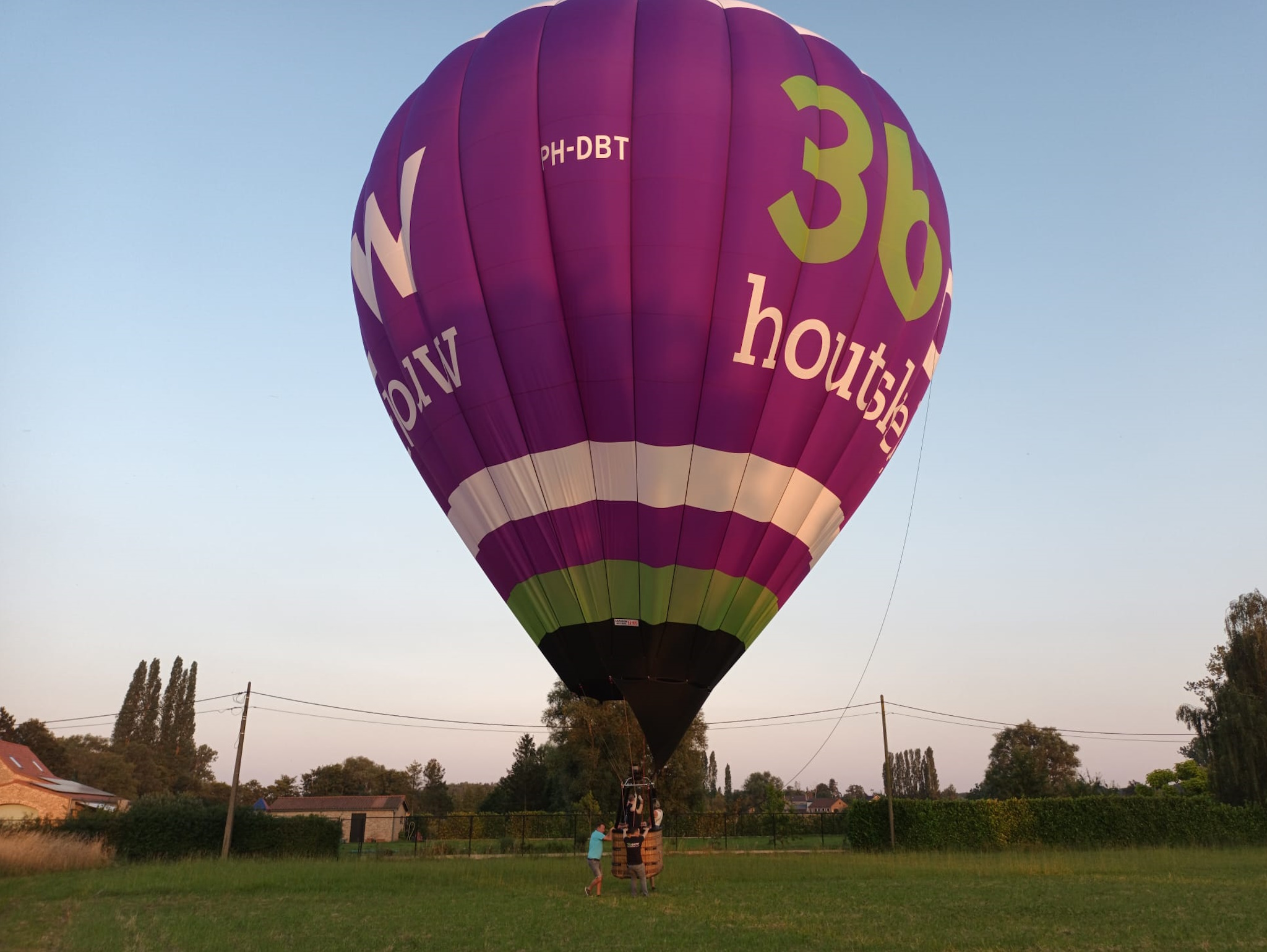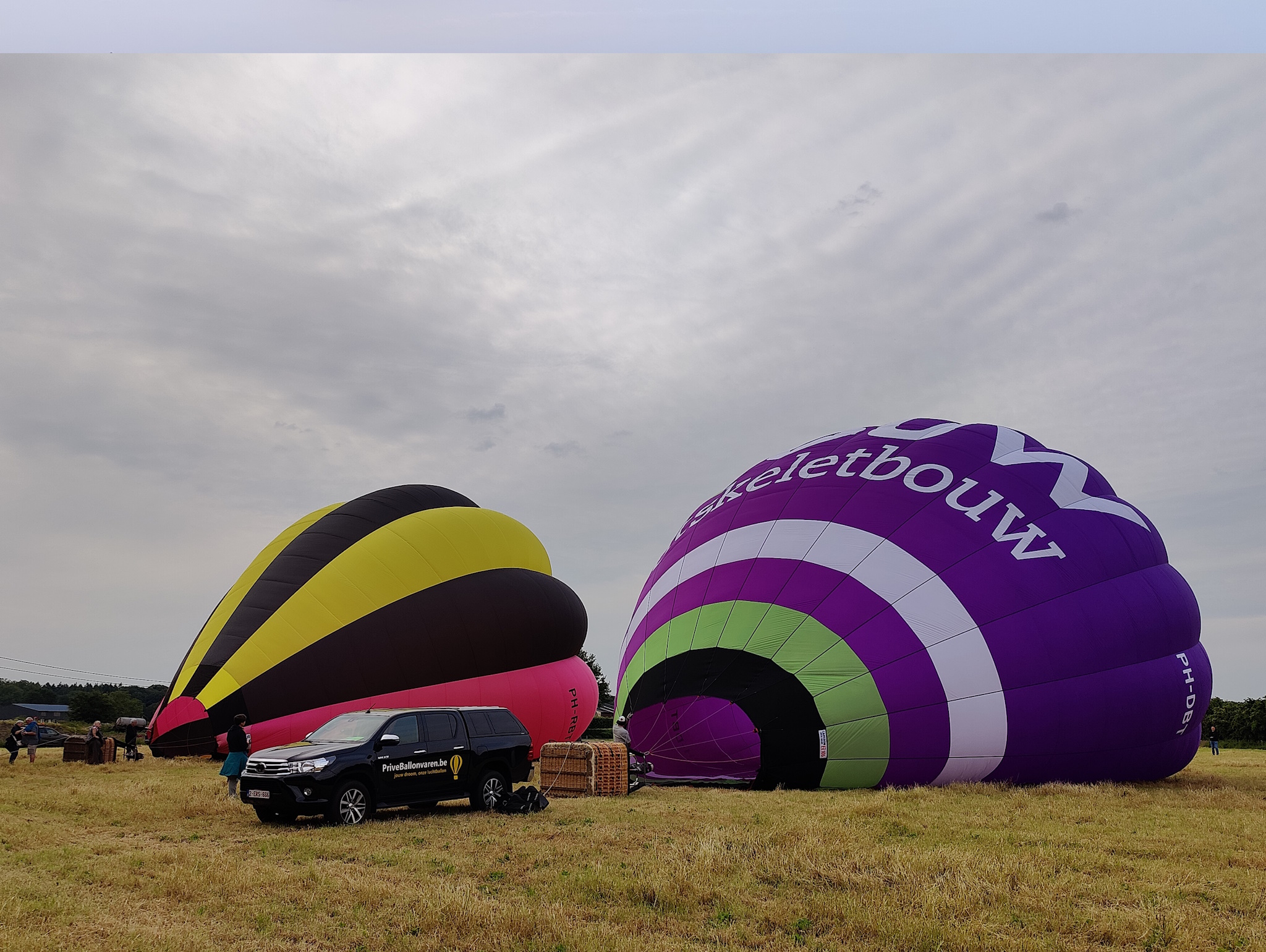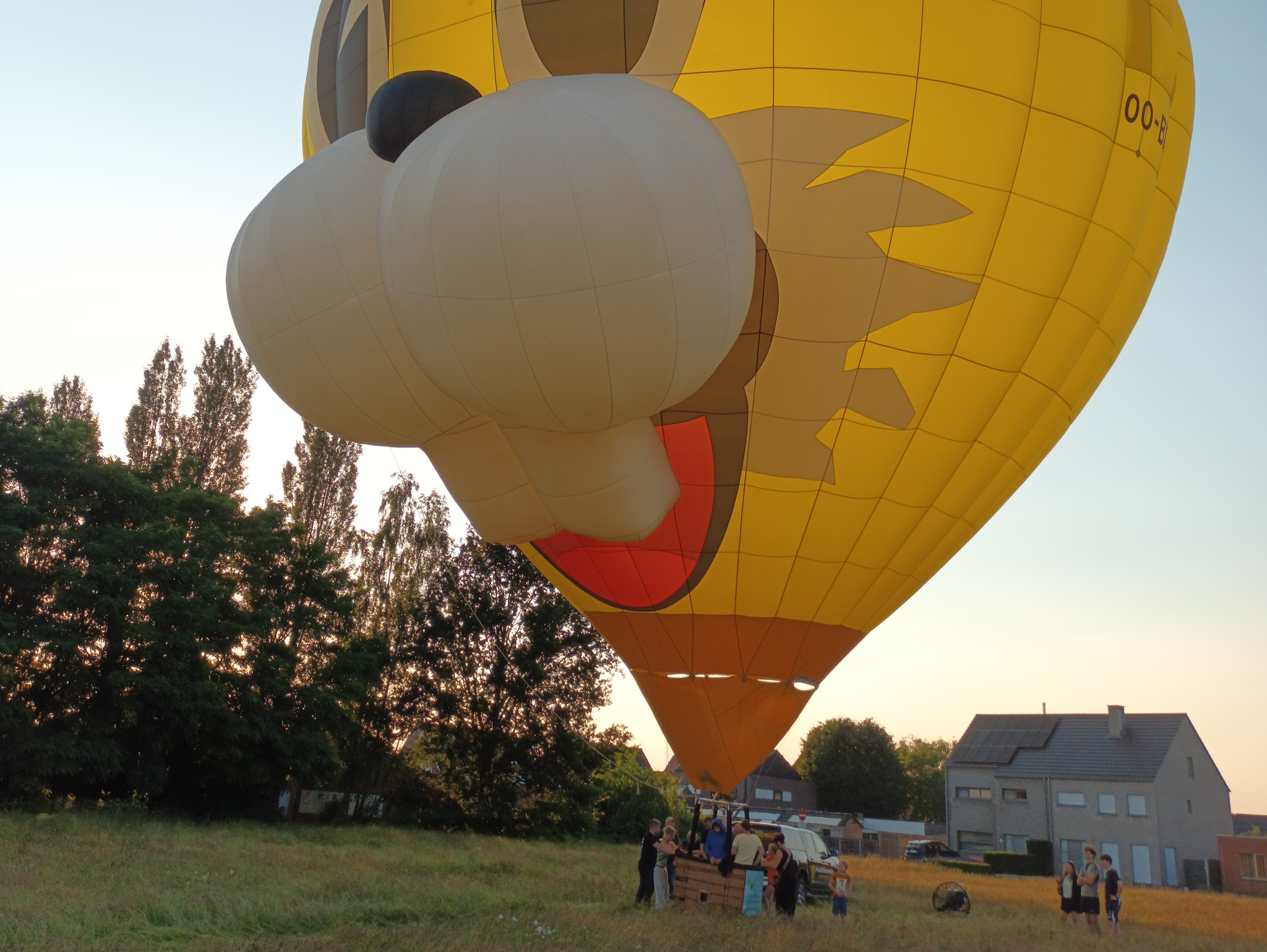 Vanavond vertrokken we voor een prive ballonvaart vanuit Wiekevorst. Met een snelheid van 15km/u ging het richting Heultje. Ondanks dat vele velden er nog nat bijliggen doen de landbouwers pogingen om hun grassen te maaien en binnen te halen. In het bosrijke gebied rond Herselt vonden we een klein pas gemaaid veldje waar de ballon zachtjes aan de grond werd gezet.