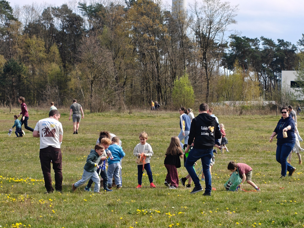 In de namiddag waren we te gast bij de Koninklijke Model Aero Club Herentals aan het Proostenbos. Niet om de lucht in te gaan maar voor een static display zoals dat genoemd wordt. Hier vond naar jaarlijkse traditie de paasdropping plaats. Vanuit de modelvliegtuigen werden paaseitjes over het veld gedropt waarna de kinderen naar hartenlust konden gaan rapen. Zes gouden eieren werden gedropt en onder de vinders ervan werd een cadeaubon voor een ballonvaart verloot. De opkomst was massaal met meer dan 100 kinderen. We kijken alvast uit naar de volgende editie.